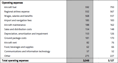 According to the chart above the only operating expense that dropped significantly was Aircraft fuel decreasing by CAD$201 million a significant contributor to their CAD$78 million total operating expense improvement.