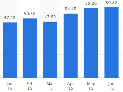 In Q2 2015 the average price of oil increased to $57.84 or an almost $10 increase.  This is important to keep in mind that while oil has been significantly down this year one should not expect the same savings on the price of fuel in Q2 2015 that we saw in Q1 2015.